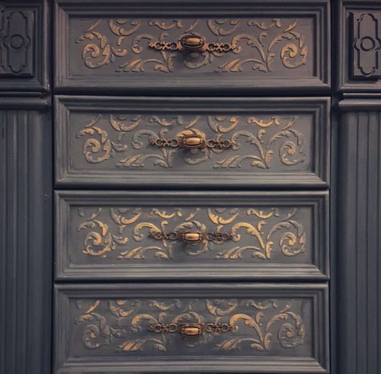 К этой раме идеально подходит роскошный фоновый трафарет "Изабелла" в классическом стиле, из фрагментов которого она собрана.