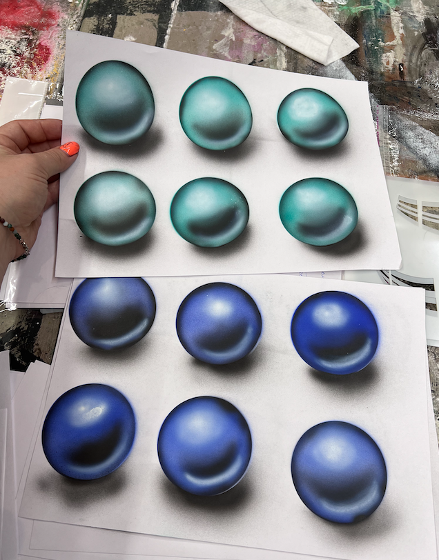 Тонкий многоразовый трафарет легко мыть, а так же использовать как лекало внутренний шар в диаметре 6см для создания падающей тени.